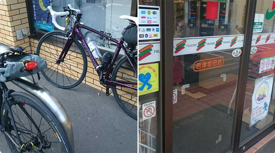 三浦離れたところで、お師匠もびゅんびゅん牽いてくださって、葉山マリーナ近くのセブンイレブンです。