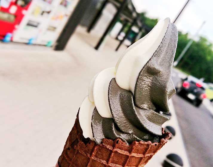 帰りに高速の嵐山PA(上り)でブラックソフトを食べる。本日2つめのソフトクリーム 笑
