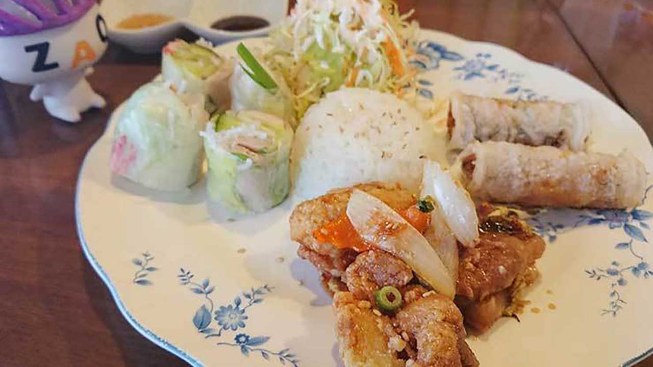 生春巻き、揚げ春巻き、鶏の唐揚げ。