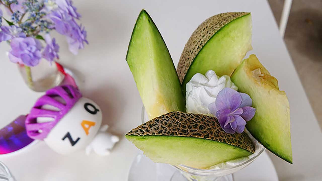 そして、食事が終わってから、デザートのメロンパフェを作ってもらいました。