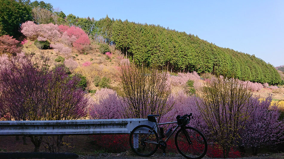 ここで通りすがりの男性ローディーと一緒になって「ここはキレイですねー」なんて会話と、花桃の郷と桃源郷の情報交換をして、お別れしました。