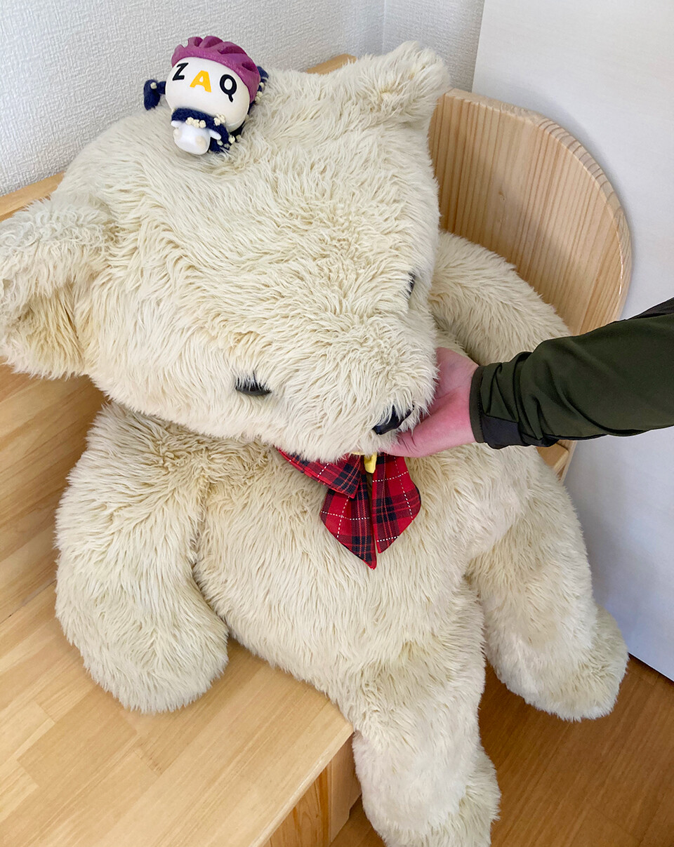 ハッピータイムのクマに手をかまれる人(Bmaxさん)。