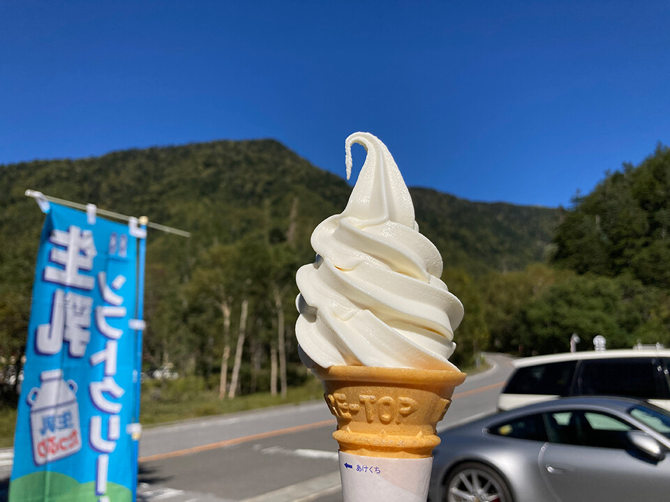 金精峠から少し下ったところの、菅沼の茶屋でソフトクリーム。