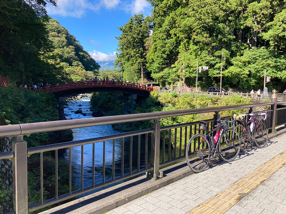 あきあきしゃんは日光ライドは初めてだっていうので、名所の神橋で撮影タイム。