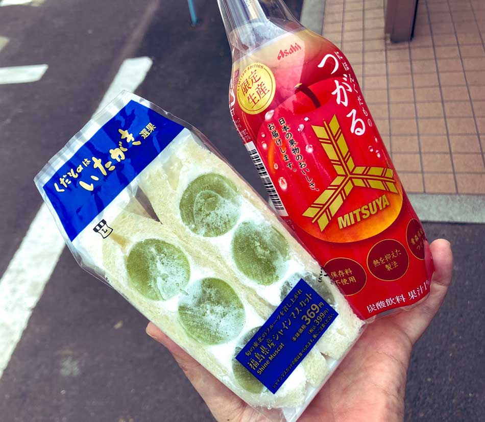 フルーツサンドは、断面だけじゃなくて奥にもちゃんとシャインマスカットが挟んでありました(…ちょびっとだけだけど)。三ツ矢サイダーのりんごは大大大好きなので、定番商品にしてほしいー。