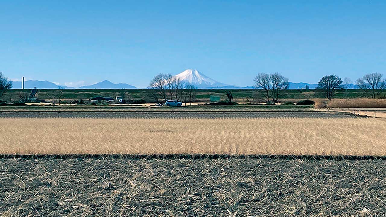 天気よくて、田んぼ区間からくっきり見える富士山。