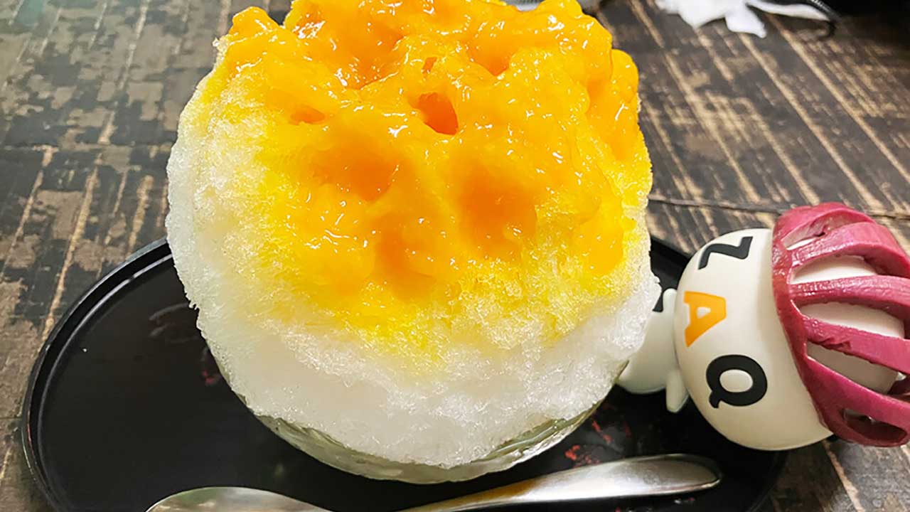 私はマンゴーとモンブランのかき氷にしました。上はマンゴーで作ったシロップがかかっていて、中にモンブランクリームとアイスが入ってます。