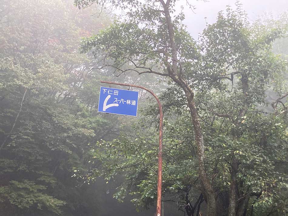 やっと「御荷鉾スーパー林道」の標識が見えた! …まぁ御荷鉾スーパー林道展望台は、ここから6kmくらい登った先なんですけどね。